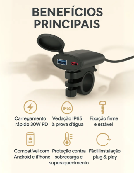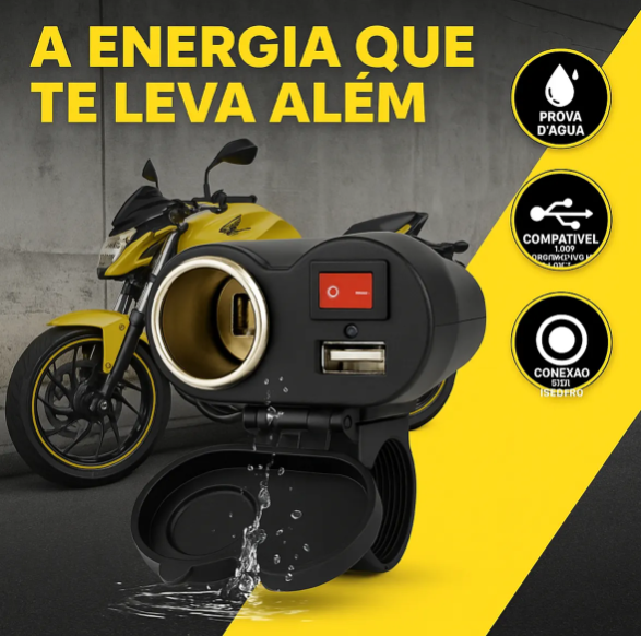 Garanta agora sua tomada 2 em 1 e pilote com mais autonomia, segurança e praticidade em qualquer percurso.