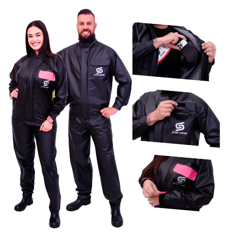 Feminina e Masculina A Capa de Chuva PVC Luxo da Star Capas é ideal para motociclistas que enfrentam diferentes condições climáticas.
