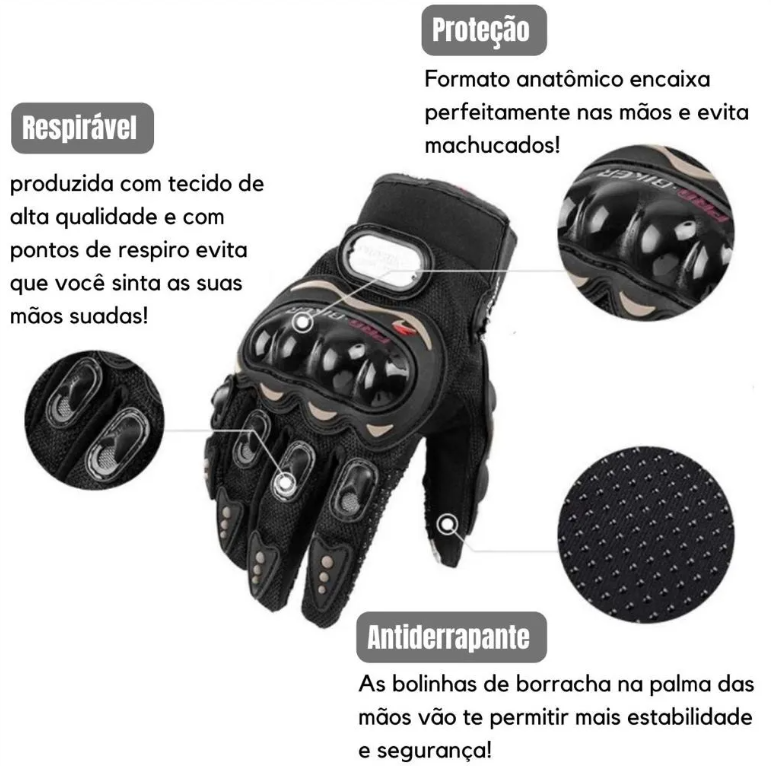 O Par de Luvas para Motoqueiro Motociclista Impermeavel foi desenvolvido para proporcionar mais protecao, conforto e seguranca durante a pilotagem. Ideal para quem utiliza moto no dia a dia ou em viagens, garantindo melhor aderencia e protecao para as maos.